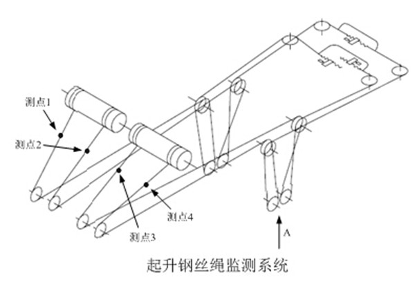 作為岸橋起重機結(jié)構(gòu)重要的起升機構(gòu),其鋼絲繩系統(tǒng)共布置了4個測點,示意圖如下: