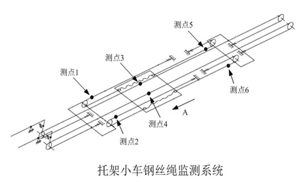 牽引小車鋼絲繩系統(tǒng)共布置了4個測點,示意圖如下: